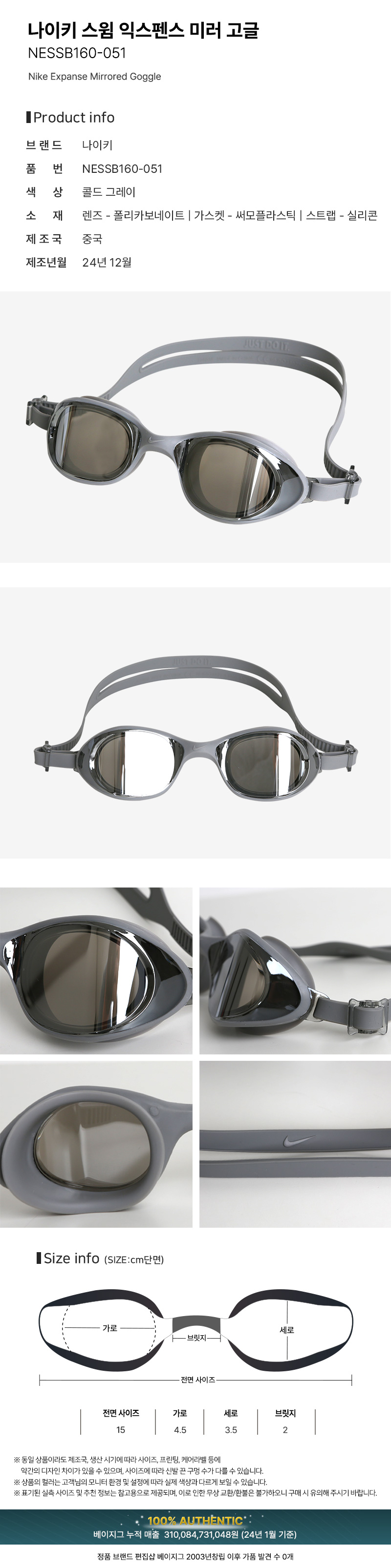 (현대Hmall)나이키 스윔 익스펜스 미러 고글 수경 수영용품 물안경 콜드 그레이 NESSB160-051