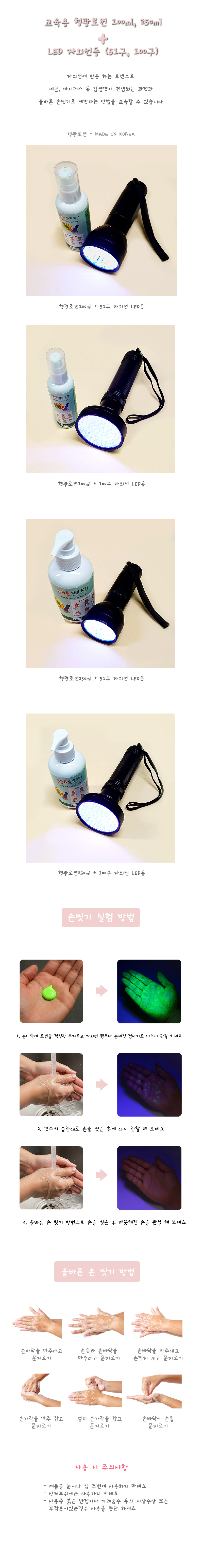 손씻기 교육 실습 형광로션(250ml)+자외선손전등 세트