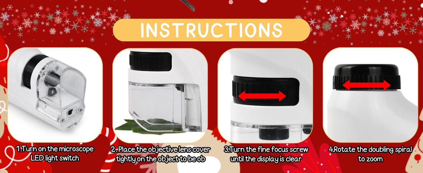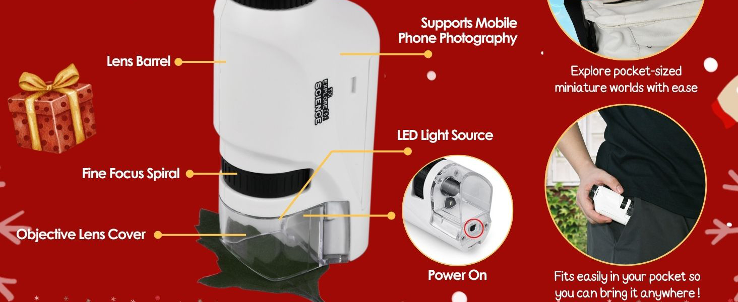 안전한 소재 - 프리미엄 ABS 플라스틱으로 제작된 이 포켓 현미경은 어린 과학자를 위해 설계되었습니다(AAA 배터리 2개 필요, 미포함)