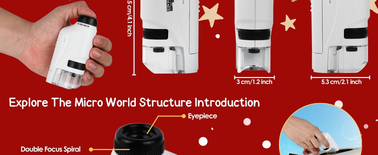 휴대용 및 편리함 - 미니 현미경은 작고 가벼우며, (3.5 온스 / 99.7 g/3.5 온스)로 실내 및 실외 발견에 적합합니다