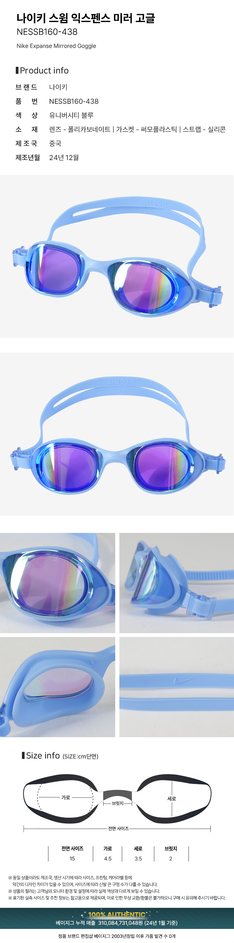 (현대Hmall)나이키 스윔 익스펜스 미러 고글 수경 수영용품 물안경 유니버시티 블루 NESSB160-438