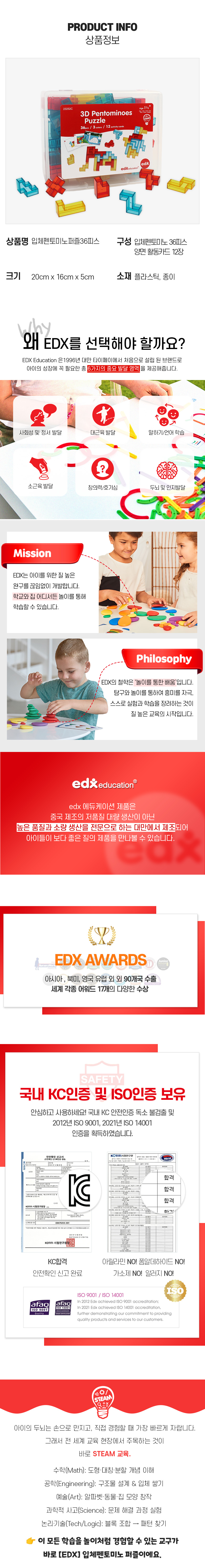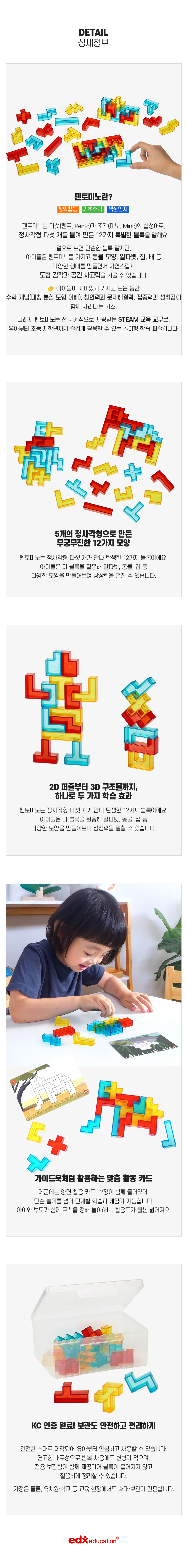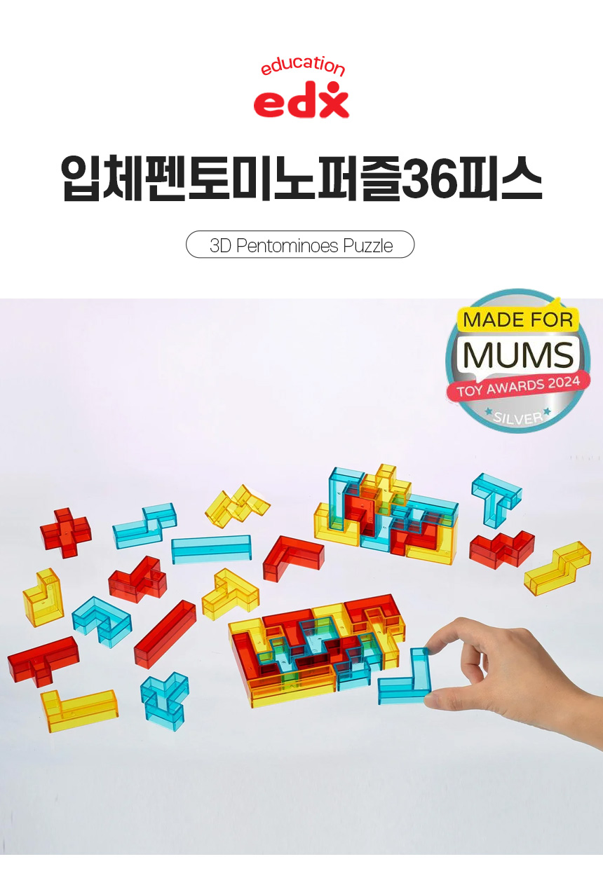 (현대Hmall)EDX 3D 입체 펜토미노 퍼즐 블록 23252C 도형 펜토 칠교놀이 수학교구 입체도형 유아 어린