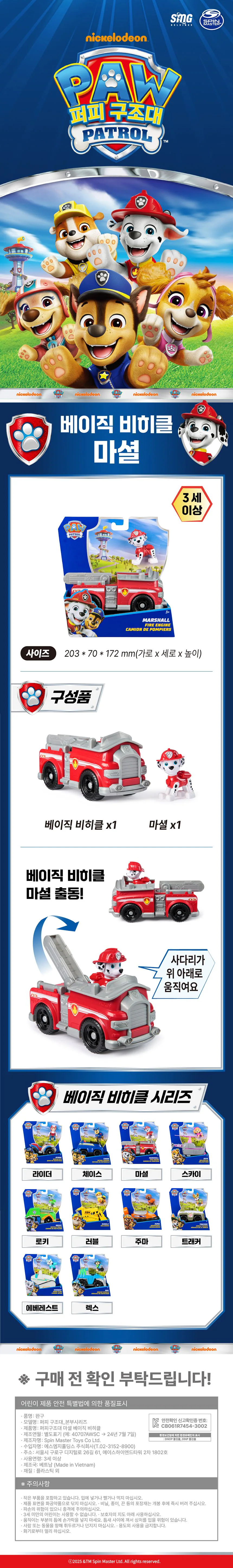 (신세계의정부점)퍼피구조대 마셜 베이직 비히클
