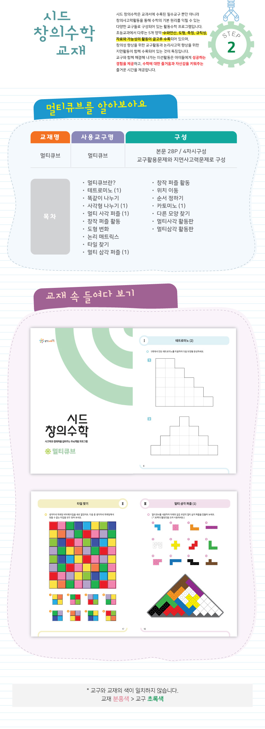 시드창의수학 스텝2 멀티큐브 교구+교재