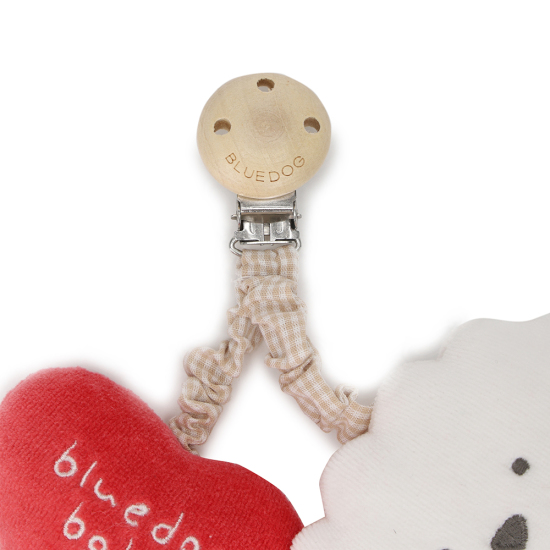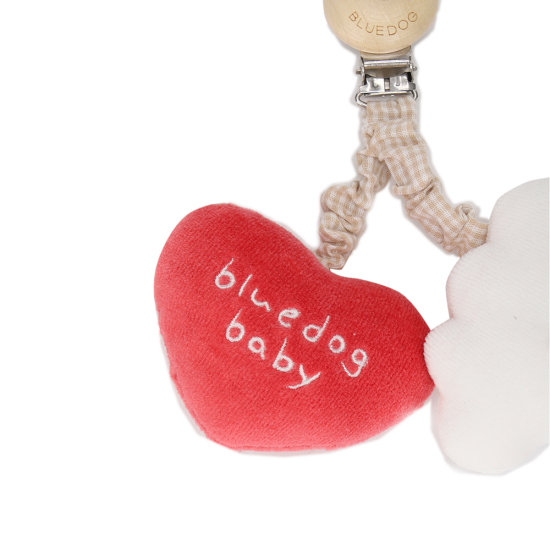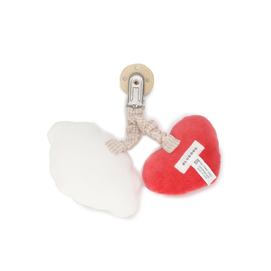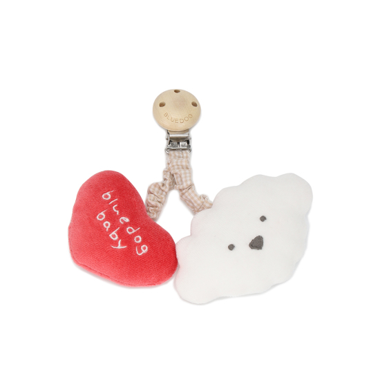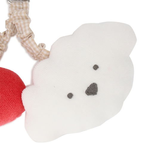 귀여운 구름강아지 인형과 하트 인형이 달려있는 유모차 클립 입니다.