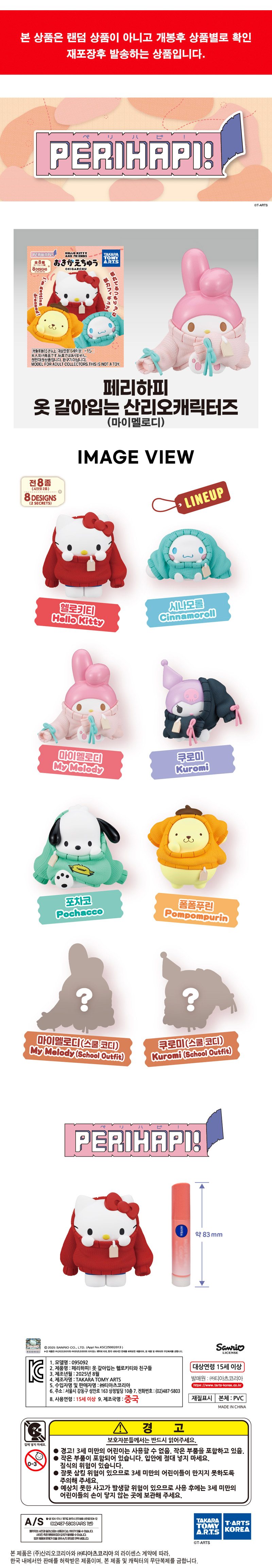 페리하피 옷 갈아입는 헬로키티와 친구들 마이멜로디 확정 피규어