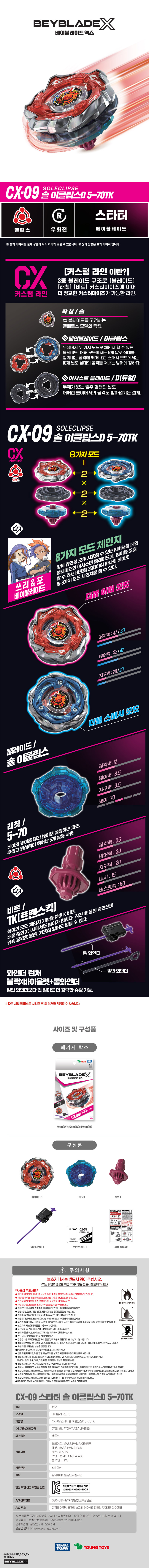 베이블레이드X CX-09 솔 이클립스D 5-70TK 배틀 팽이 놀이 장난감 완구