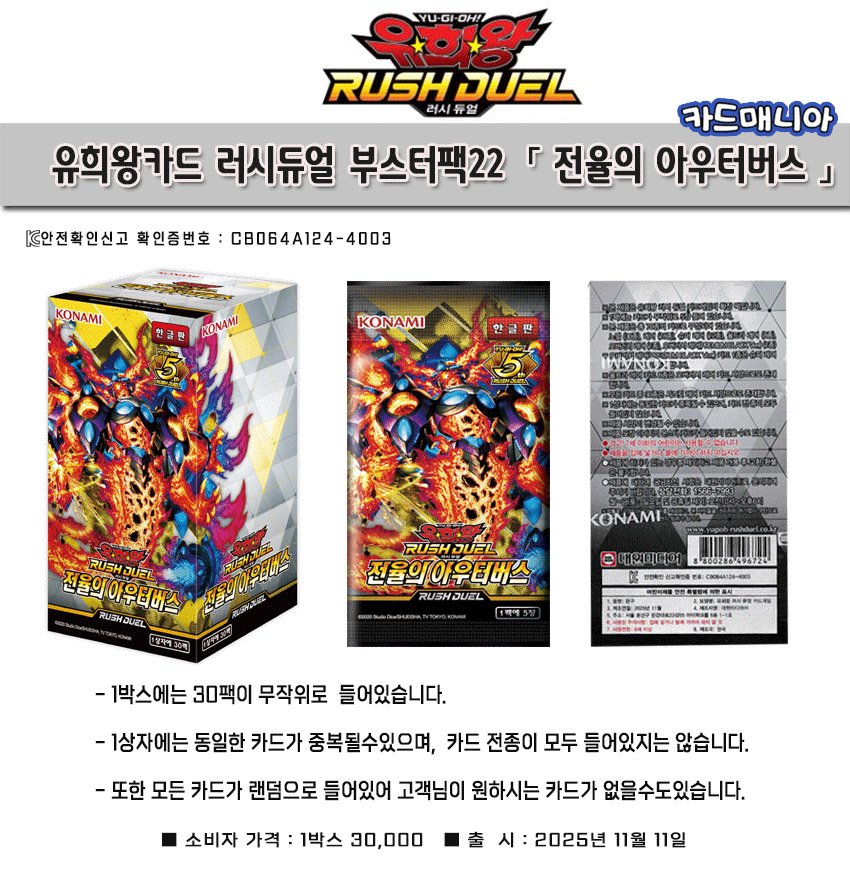 유희왕카드 러시듀얼 부스터팩22탄 전율의 아우터버스 -전율의아우터버스