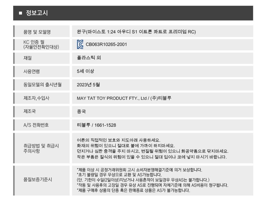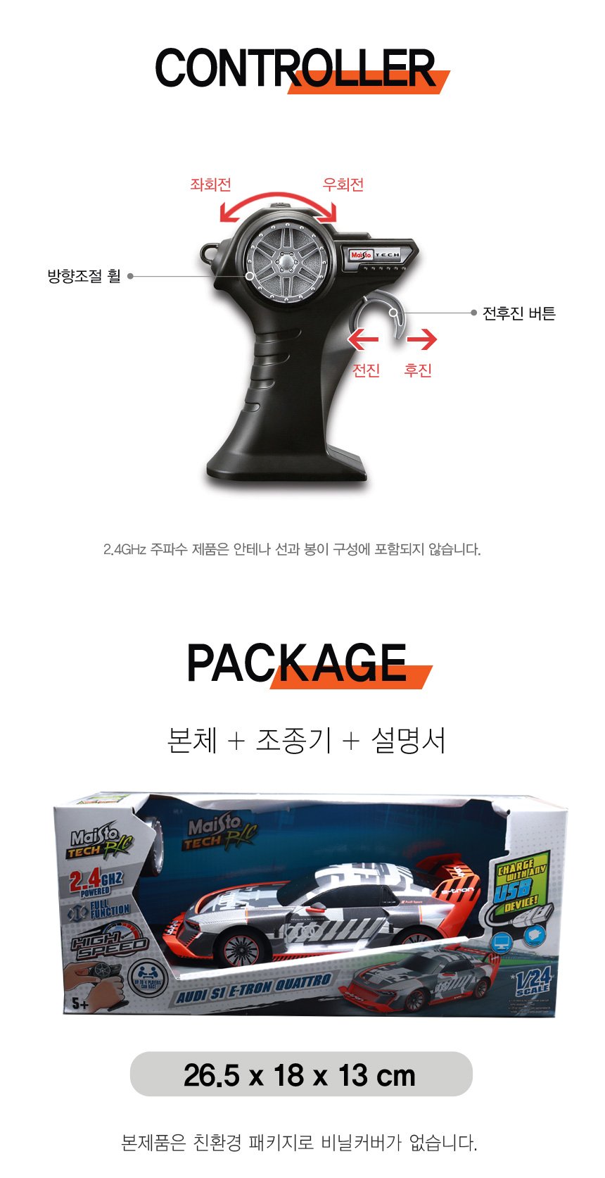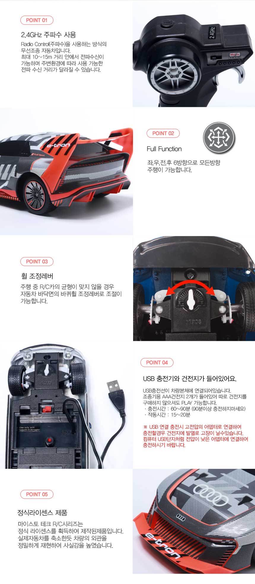 마이스토 1:24 아우디 S1 이트론 콰트로 스포츠카 레이싱카 RC 하이스피드 2.4Ghz USB충전