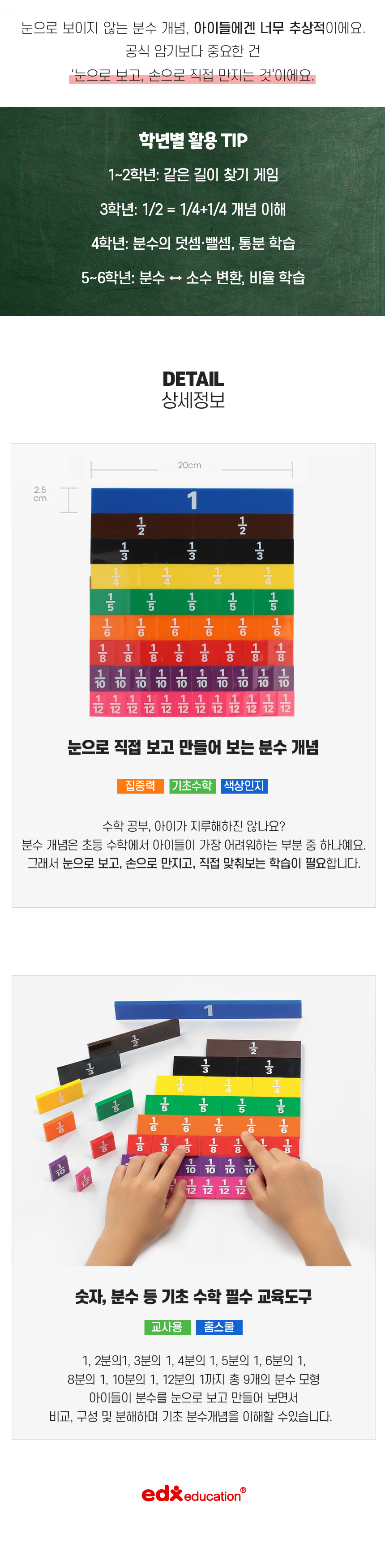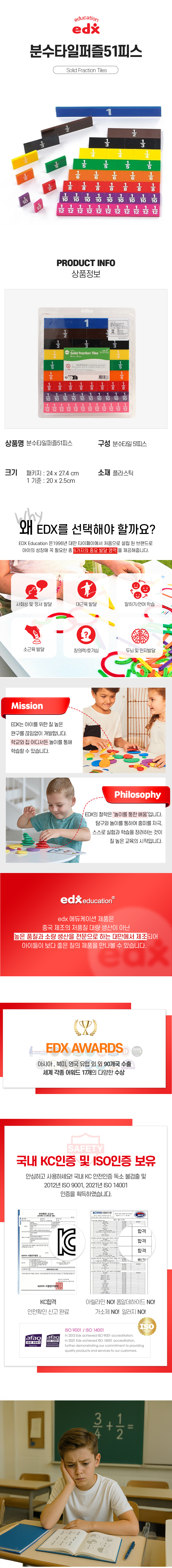 (현대Hmall)EDX 분수타일퍼즐 51피스 19220 수세기 분수 퍼즐 기초 학습 유아 초등 수학교구 분수학습