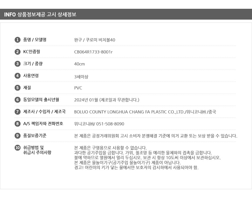 T 위니코니 쿠로미 비치볼40 무배