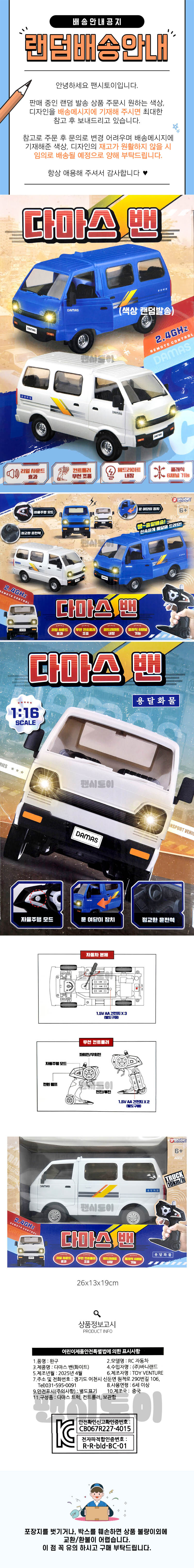 바니랜드 다마스 밴 RC카 1세트 2.4GHz 무선 알씨카 리모컨 남아 선물 키덜트 크리스마스 어린이날