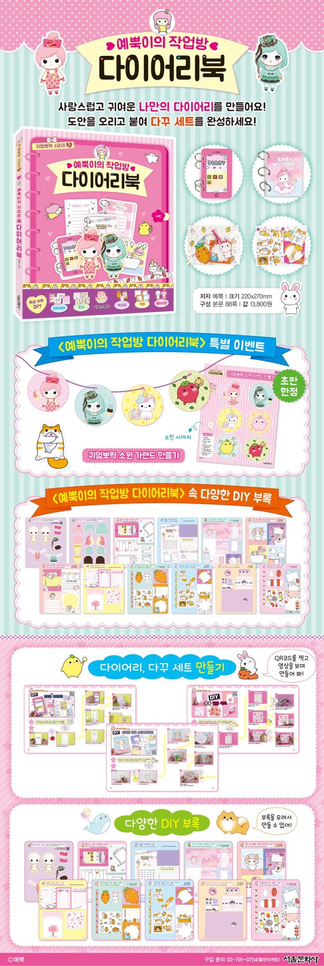 <예뿍이의 작업방 다이어리북> 속 그림을 따라 그리고, 도안을 오리고, 붙이면 나만의 다이어리와 다꾸 세트를 만들 수 있어요.