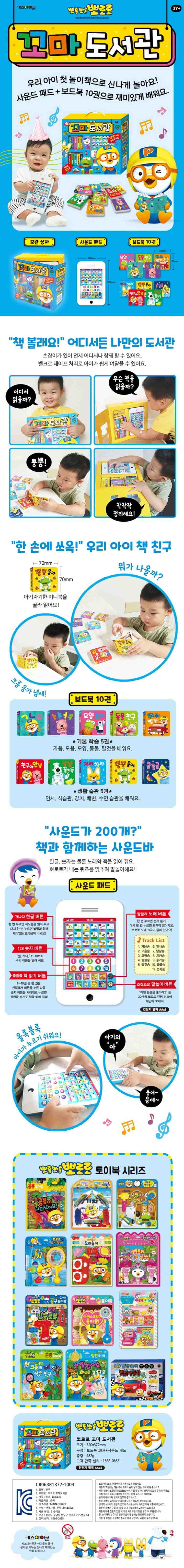 뽀롱뽀롱 뽀로로 『꼬마도서관 사운드북 세트(2020)』를 통해 우리 아이 첫 놀이책으로 신나게 놀아요! 사운드 패드 + 보드북으로 재미있게 배울 수 있어요. 손잡이가 있어 언제 어디서나 함께 할 수 있으며 아기자기한 미니북을 골라 읽을 수 있어요.