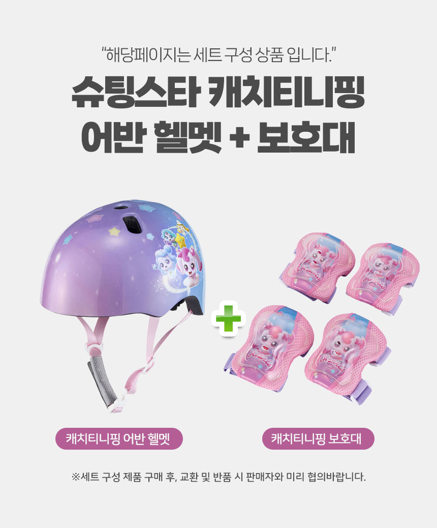 슈팅스타 캐치티니핑 어린이 어반 헬멧 + 무릎 보호대 세트