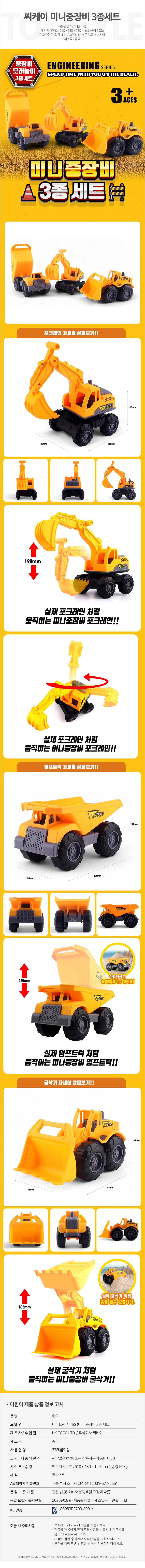 (현대Hmall)씨케이 미니 중장비 3종 세트 모래놀이 장난감 포크레인