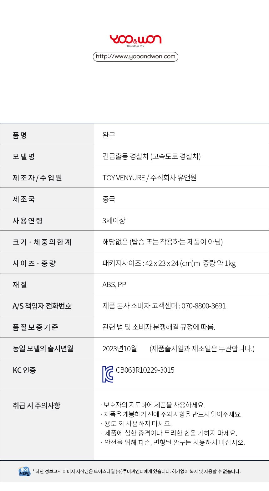 (현대Hmall)유앤원 고속도로 경찰차 프릭션 장난감 자동차