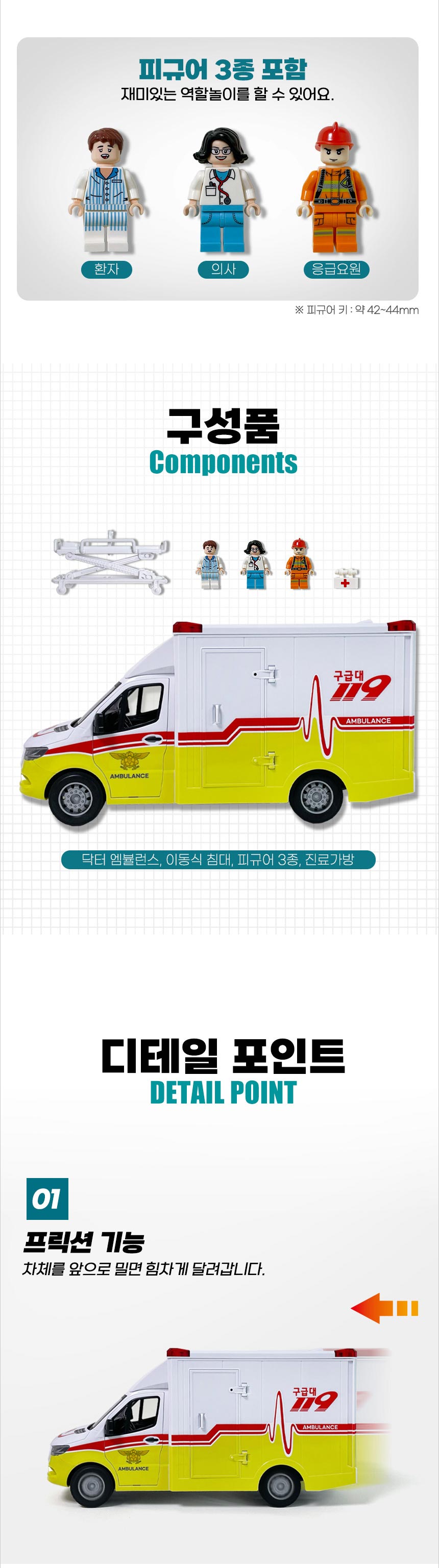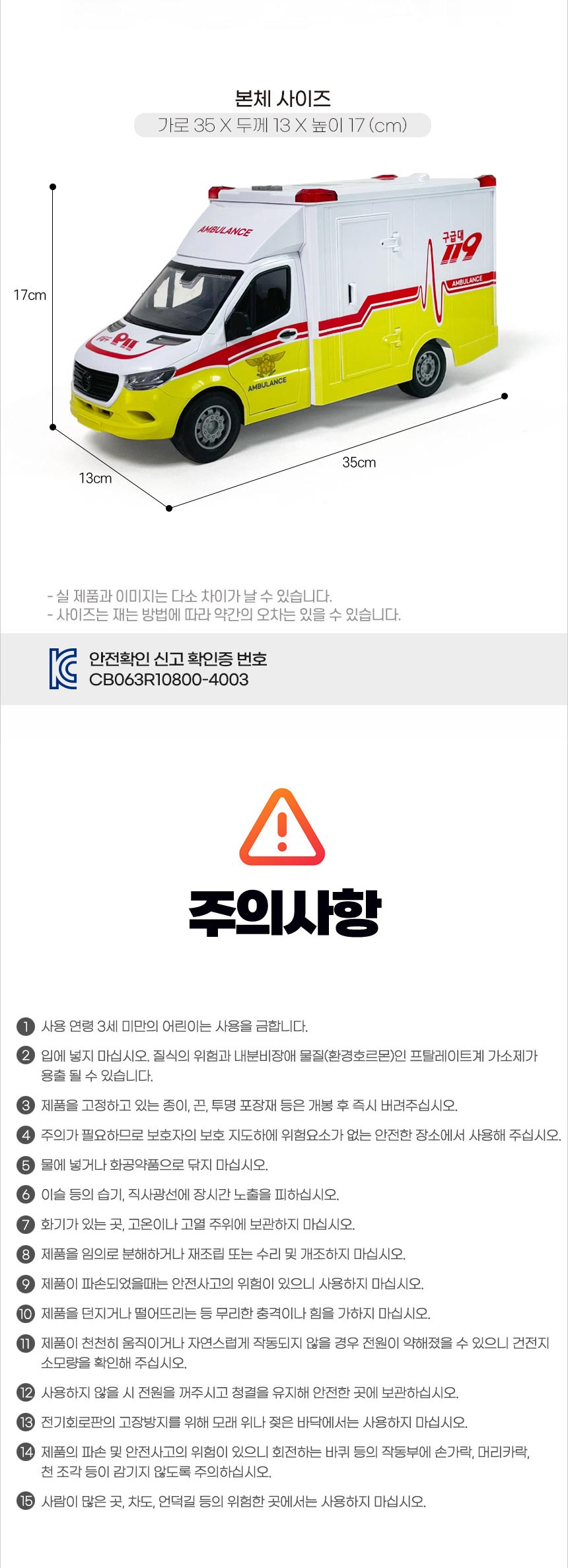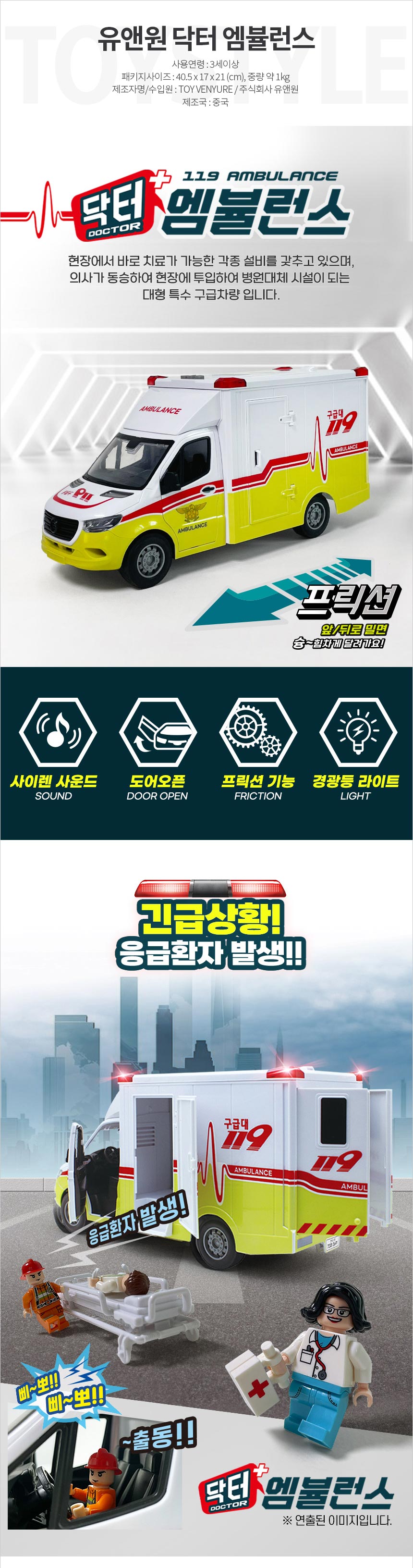 (현대Hmall)유앤원 닥터 엠뷸런스 119 후릭션 구급차 장난감
