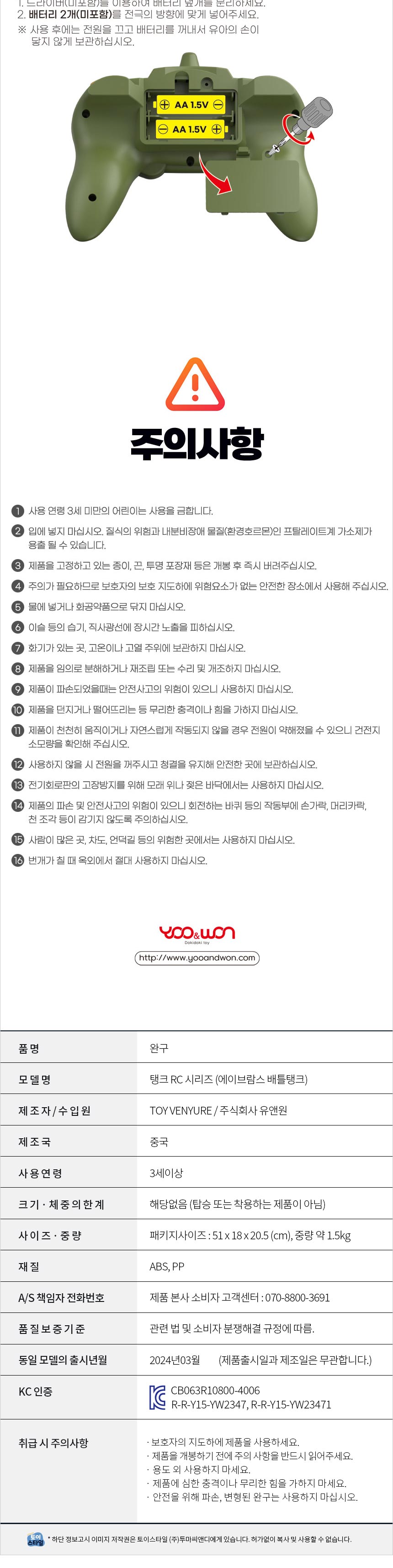 (현대Hmall)유앤원 에이브람스 배틀탱크 RC 무선조종 장난감