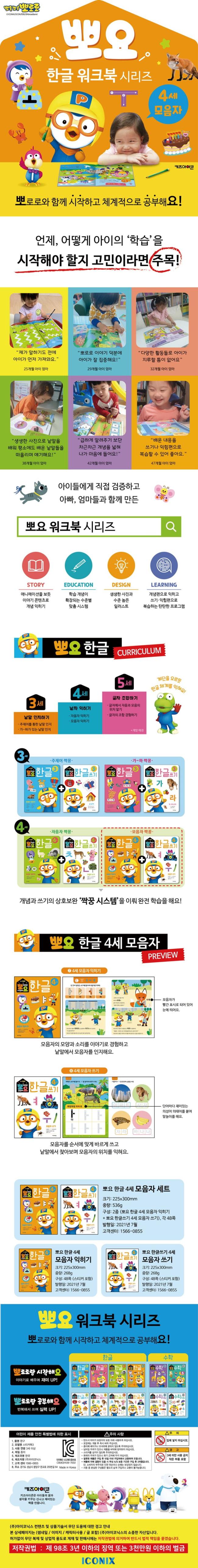 (현대Hmall)웅진북센뽀로로 뽀요 한글 4세 모음자 익히기
