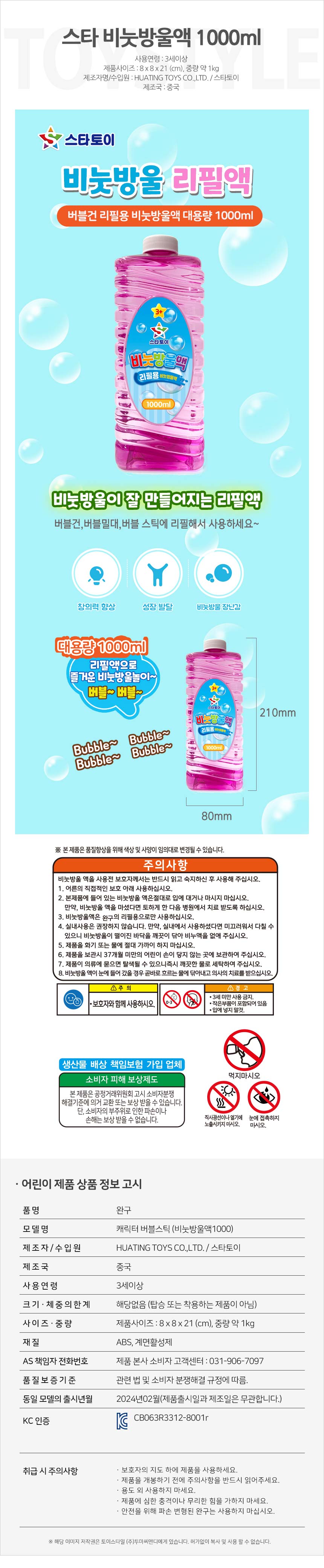 비눗방울액 리필액 버블액 1000ml