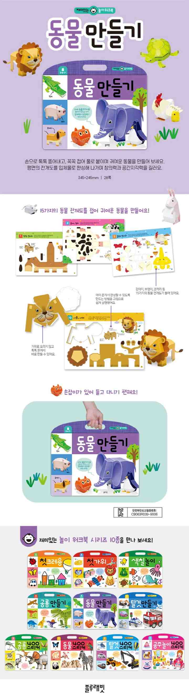 톡톡 뜯고, 꼭꼭 눌러 접어 풀로 붙이면 동물 완성!