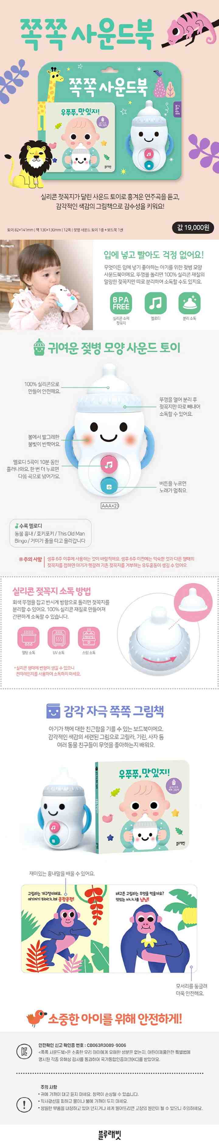 귀여운 젖병 모양 사운드 토이 〈쪽쪽 사운드북〉