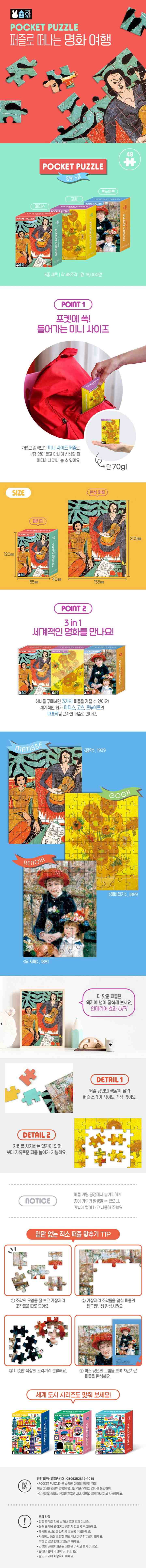 하나를 구매하면 3가지 퍼즐을 가질 수 있어요! 세계적인 화가 마티스, 고흐, 르누아르의 대표작을 근사한 퍼즐로 만나요. 마티스의 강렬한 색채로 표현된 음악의 선율, 고흐의 붓끝에서 피어난 노란 해바라기, 르누아르의 따뜻한 시선으로 그려 낸 봄날의 두 소녀. 퍼즐을 맞추며 예술 작품을 보다 깊이 감상하고 미적 감각과 감수성을 기를 수 있어요.