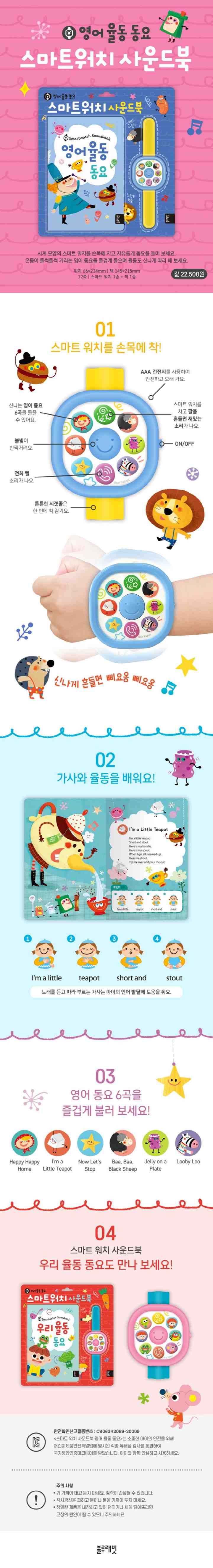 손목에 차고 다니면서 신나는 동요와 재미있는 효과음을 들을 수 있어서 두 손을 자유롭게 사용할 수
