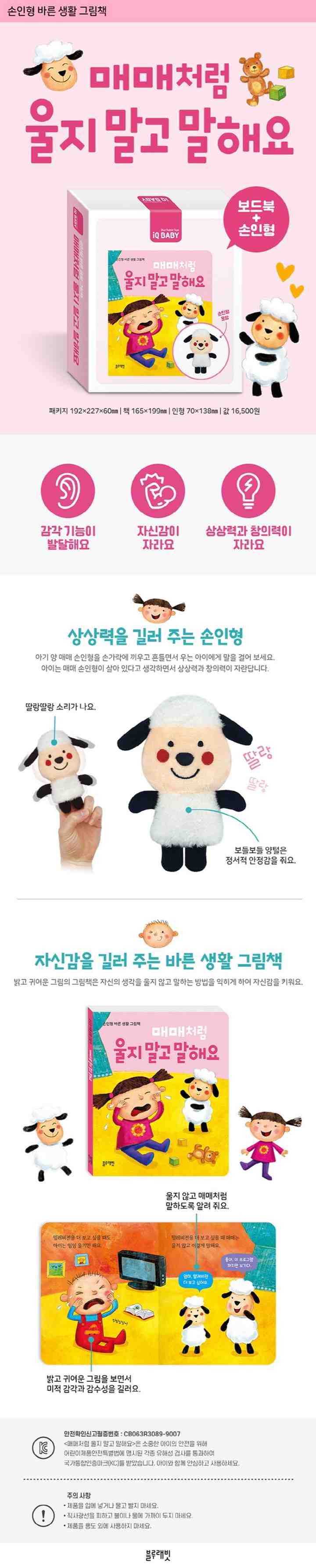 하지만 똑같은 상황에서 아기 양 매매는 울지 않고 또박또박 자신의 생각을 분명하게 말한답니다. 그림책과 귀여운 손인형이 있는 〈매매처럼 울지 말고 말해요〉는