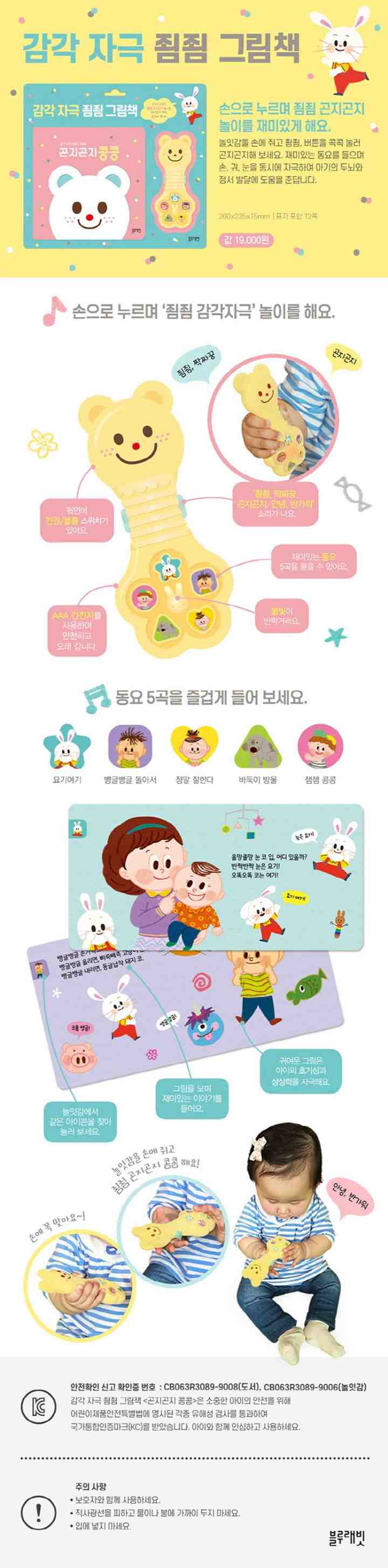 동시에 손과 눈과 귀를 자극하여 아기의 두뇌 발달과 정서적, 인성적 조화를 형성하도록 도와준답니다.