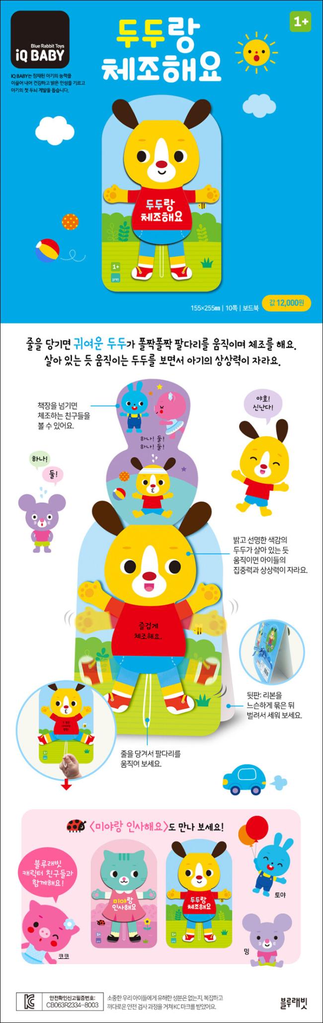 그러면 두두가 두 팔을 훨훨, 두 다리를 폴짝폴짝 뛰면서 체조하지요. 단순한 움직이지만 아이는 두두가 마치 살아서 체조하는 것처럼 생각할 수 있어요.
