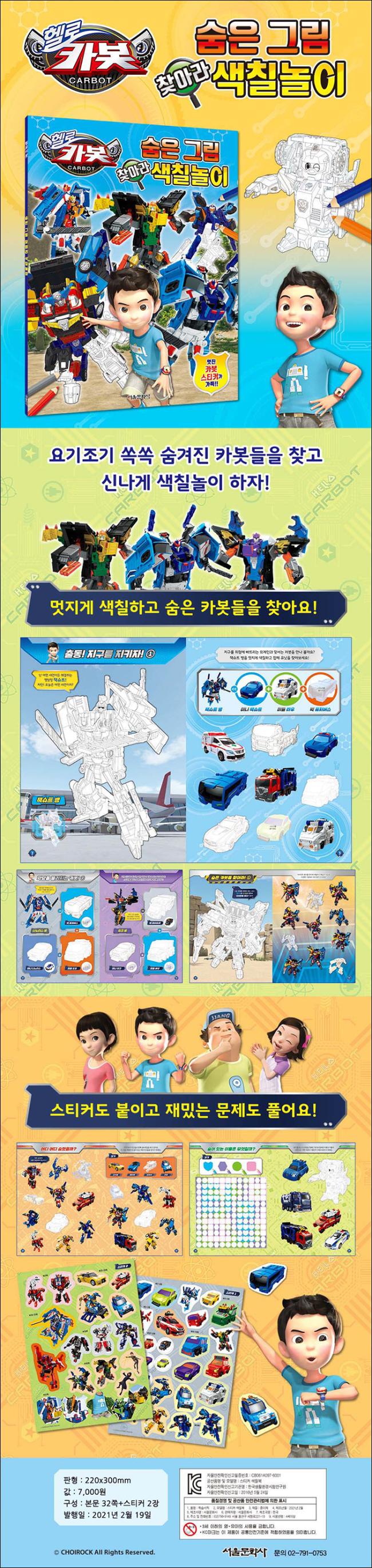 멋진 카봇들을 쓱쓱 색칠하고, 요기조기 숨겨진 친구들을 찾아보세요!