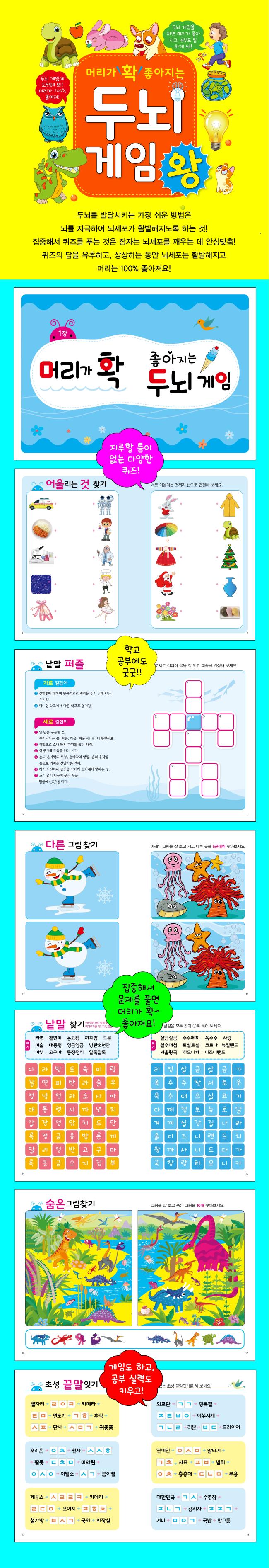아무쪼록 어린이 여러분 모두 두뇌 게임에 도전해 보세요. 머리가 좋아지고 학교 공부도 잘하게 될 거예요.
