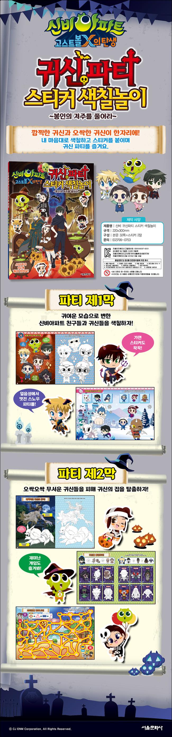 <파티 제1막> 귀신 파티에 참가하기 위해 귀신의 집으로 떠난 하리와 친구들은 봉인의 저주에 걸려 몸이 작아졌어요. 봉인의 저주를 풀기 위한 방법은 단 하나! 귀신의 집을 무사히 빠져나오는 것뿐이에요. 조그맣게 변한 하리와 친구들을 내 마음대로 멋지게 색칠하고, 귀신들이 준비한 가면 파티부터 댄스파티까지 스티커 붙이기와 색칠놀이를 통해 재밌게 즐겨 보세요.
