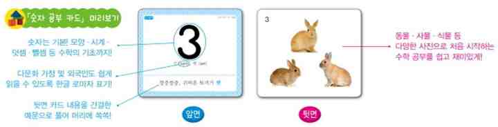 ● 카드 뒷면에 수학 기초 개념을 생생한 동물?식물?사물 사진으로 나타내어 아이들이 더욱 쉽고 재미있게 수학 공부를 시작할 수 있도록 했습니다.