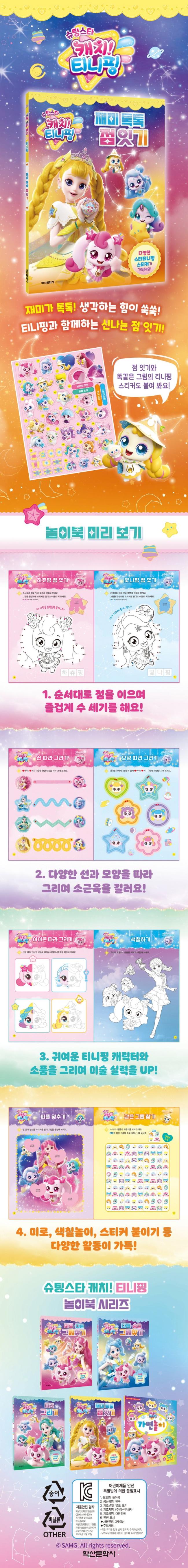 귀여운 티니핑 캐릭터 일러스트와 함께 재미있게 학습할 수 있는 두뇌 개발 놀이북이에요.