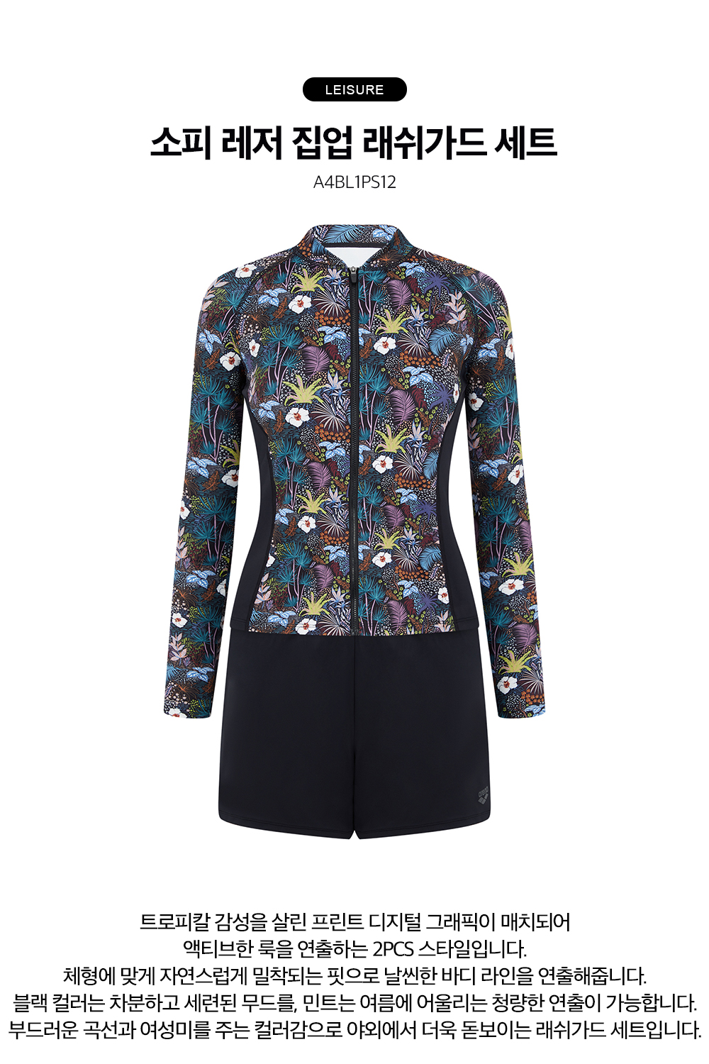 아레나공식소피 레저 집업 래쉬가드 세트 A4BL1PS12BLK