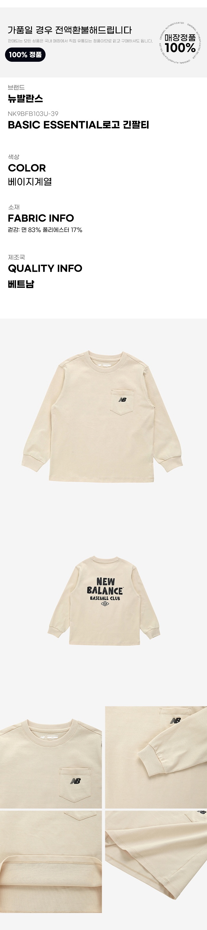 키즈긴팔티 PQC NK9BFB103U-39 BASIC ESSENTIAL로고 긴팔티