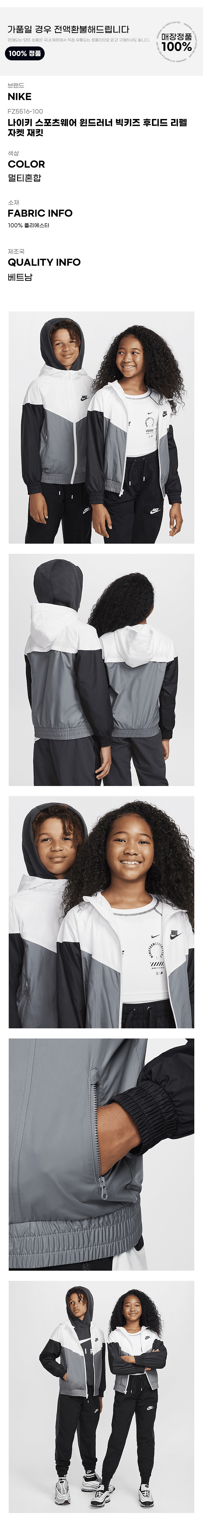 키즈바람막이 OQC FZ5516-100 스포츠웨어 윈드러너 빅키즈 후디드 리펠 자켓 재킷