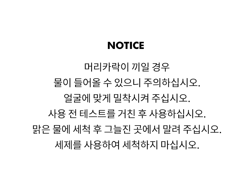 [렌즈,프레임]폴리카보네이트 / [튜브,벨브커버]폴리카보네이트 / [스커트]실리콘 / [헤드밴드] 엘라스틱고무밴드