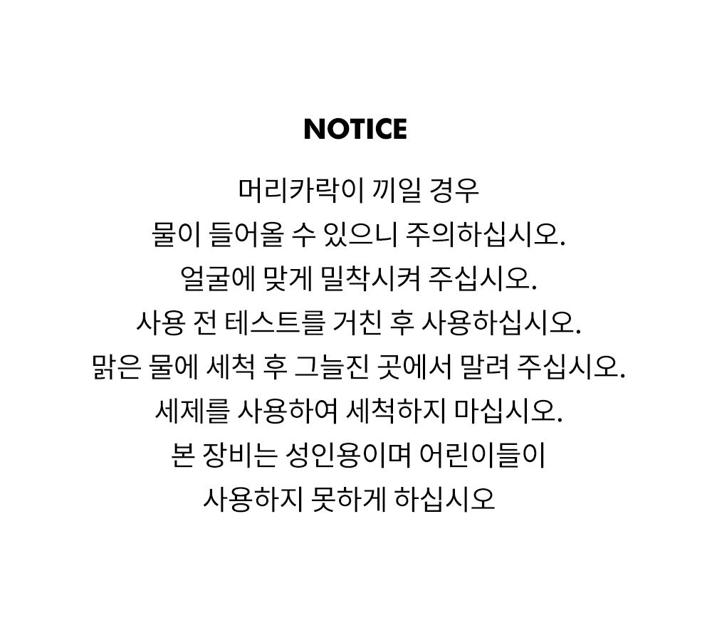 [렌즈,프레임] 폴리카보네이트 [튜브,벨브커버] 폴리카보네이트 [스커트] 실리콘 [헤드밴드] 엘라스틱고무밴드