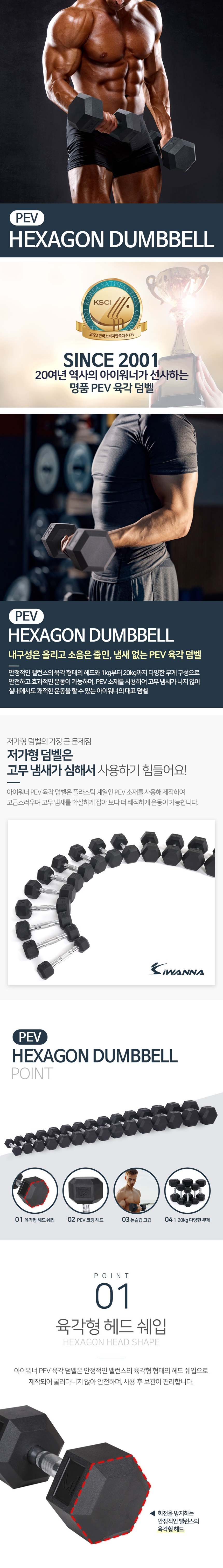 아이워너 고무냄새가 없는 PEV 육각덤벨 2kg 1set / 2ea