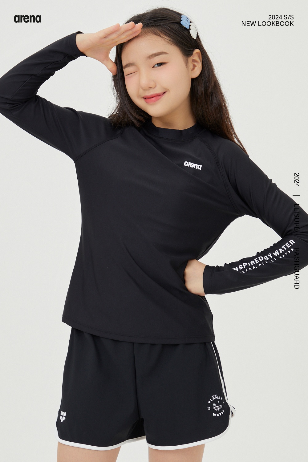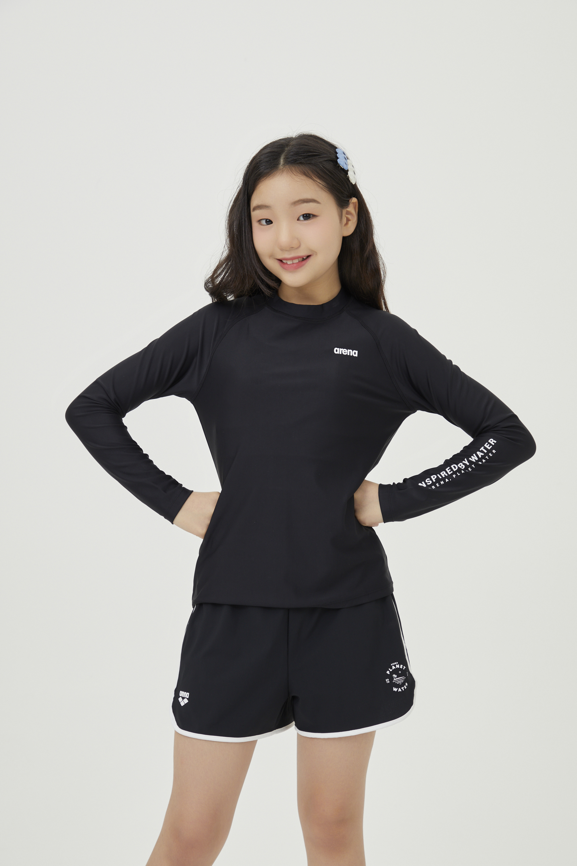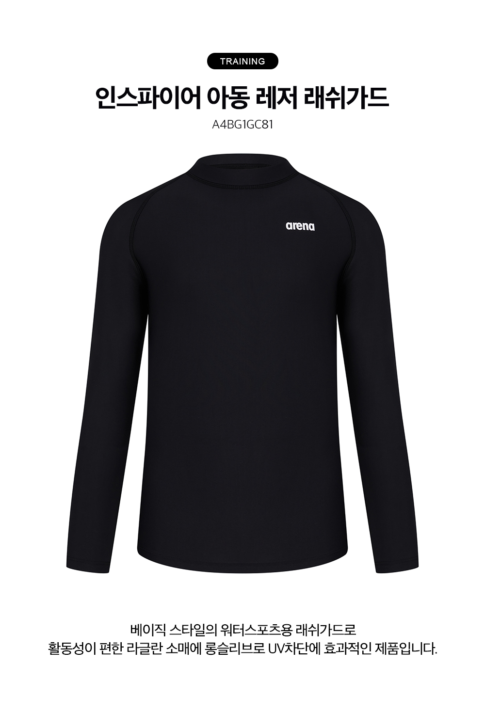 (현대Hmall)아레나공식 인스파이어 아동 레저 래쉬가드 A4BG1GC81BLK