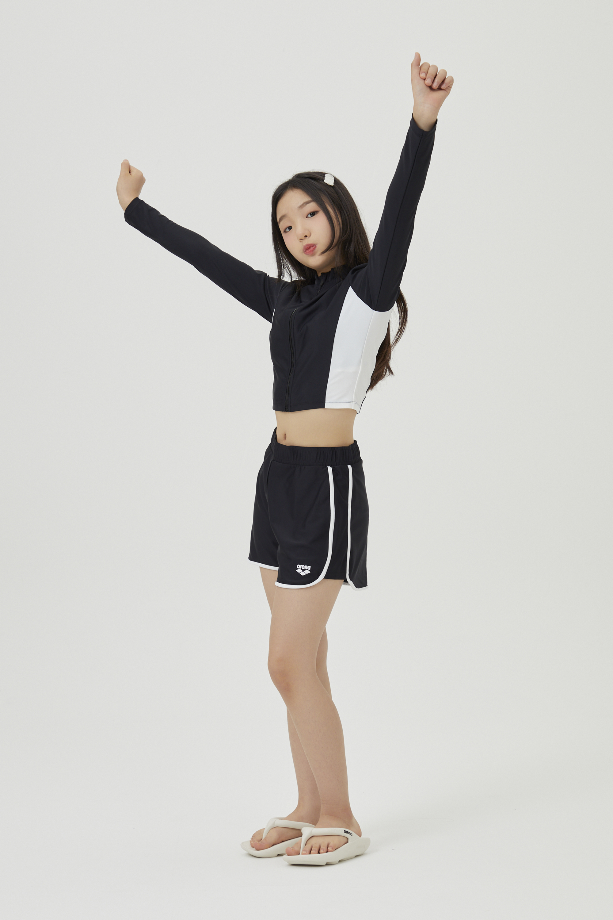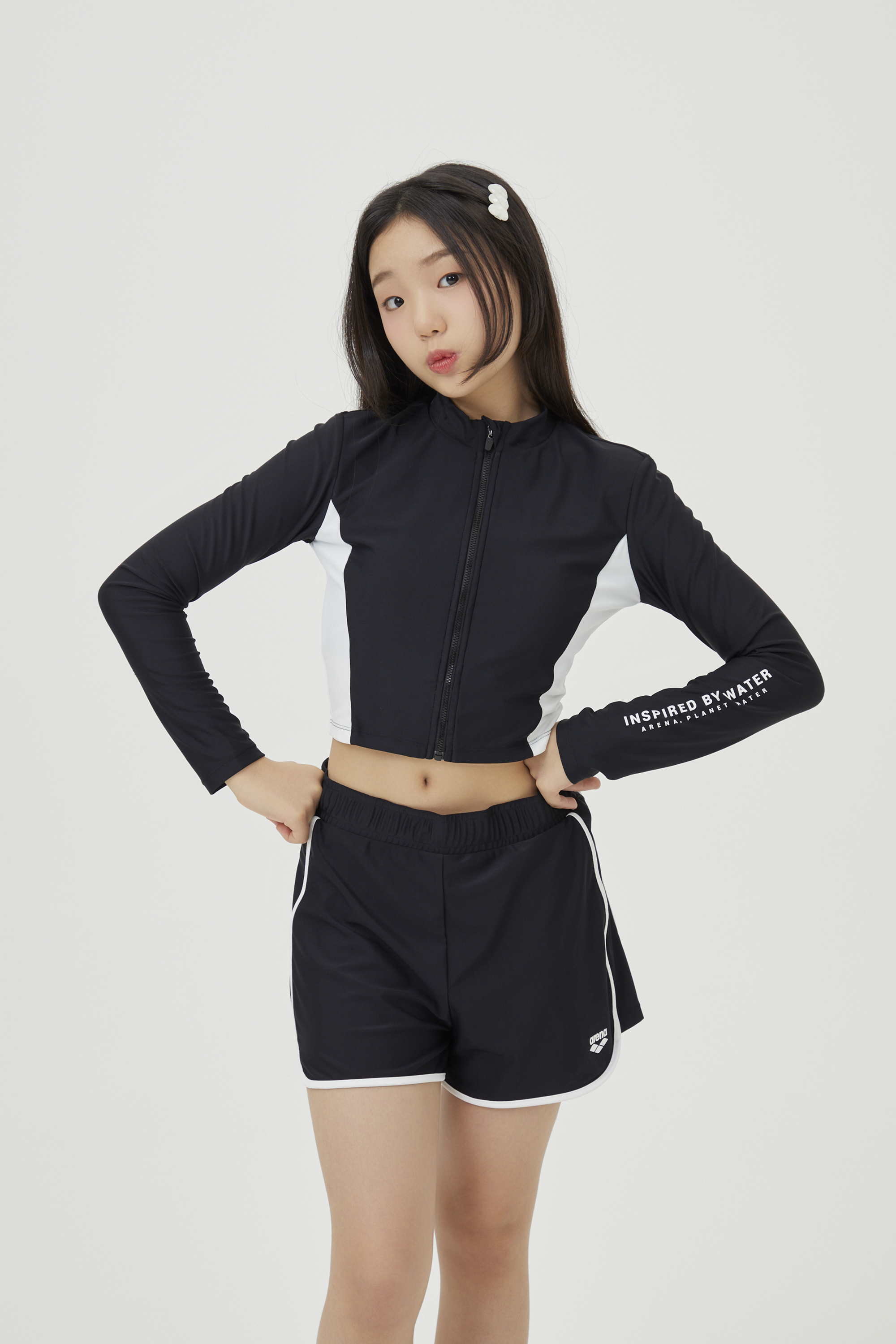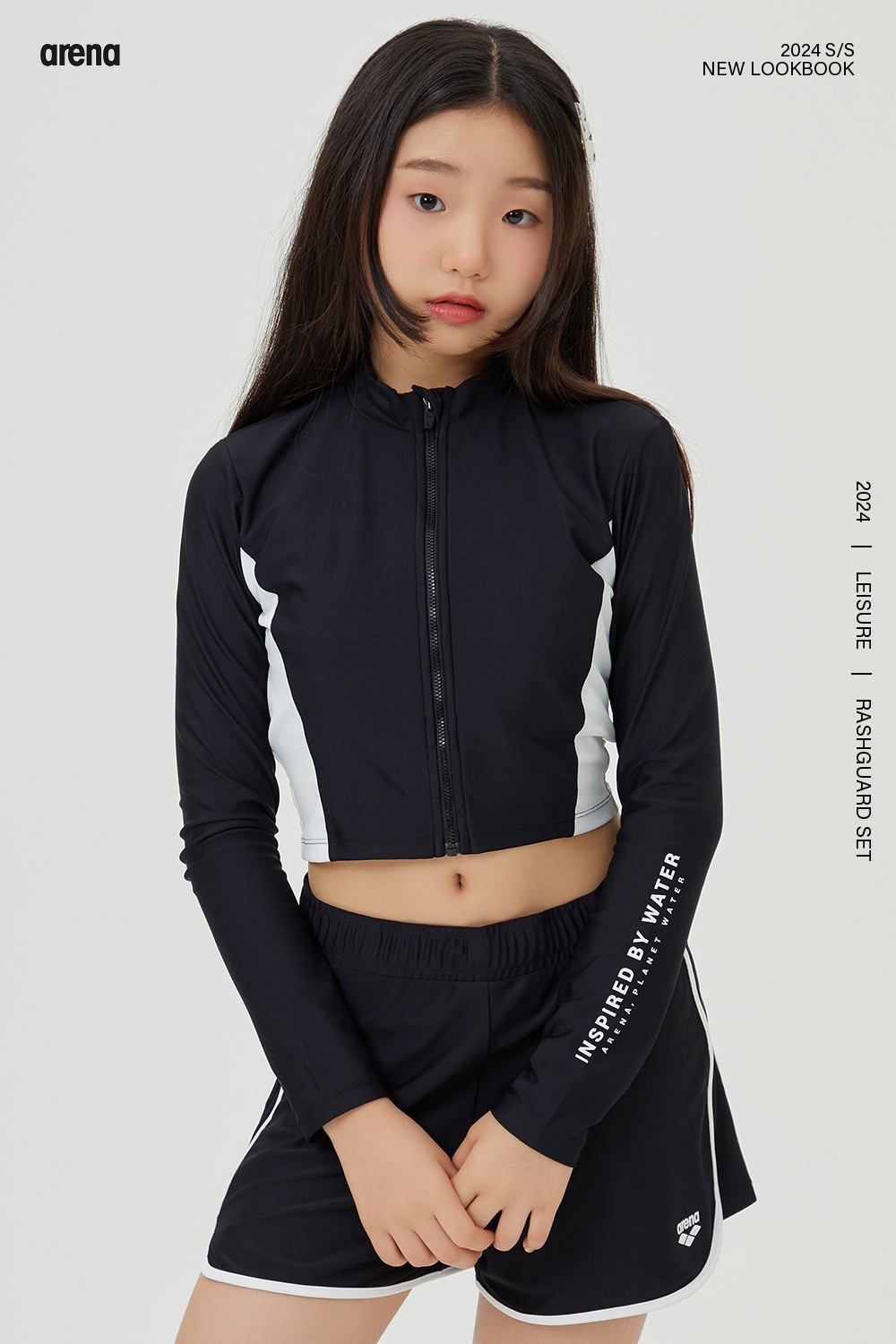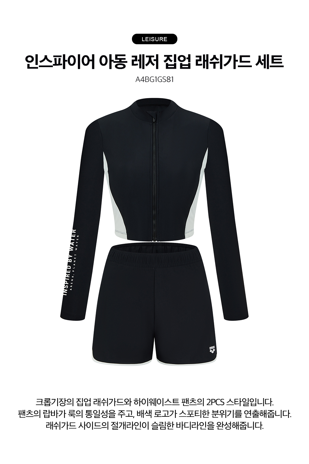 (현대Hmall)아레나공식 인스파이어 아동 레저 집업 래쉬가드 세트 A4BG1GS81BLK