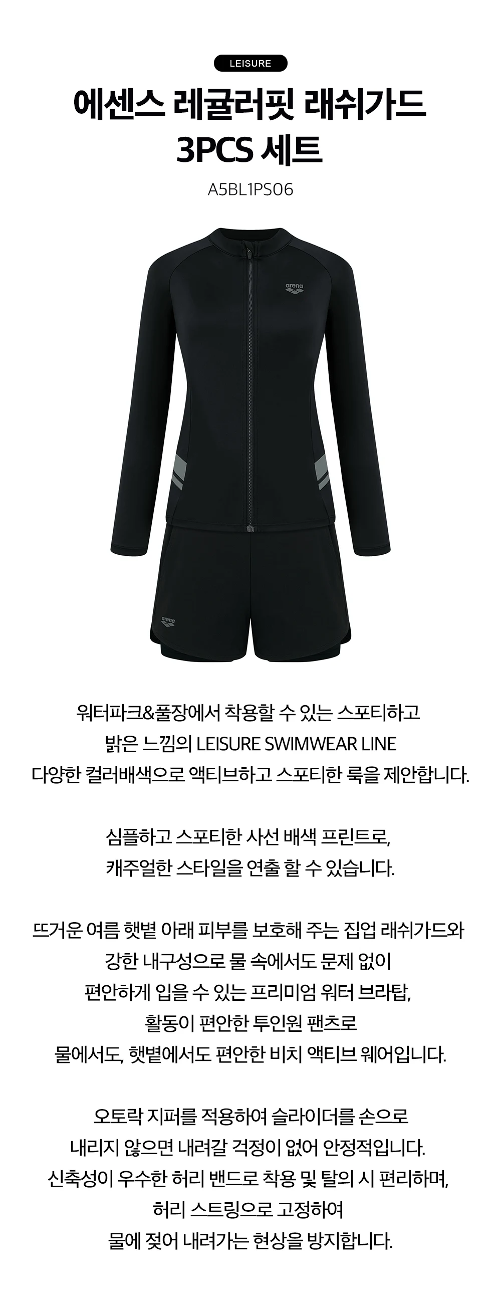 (신세계타임스퀘어점패션관)에센스 레귤러핏 여성 래쉬가드 3PCS 세트 A5BL1PS06BLK