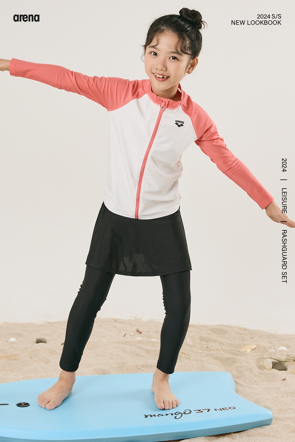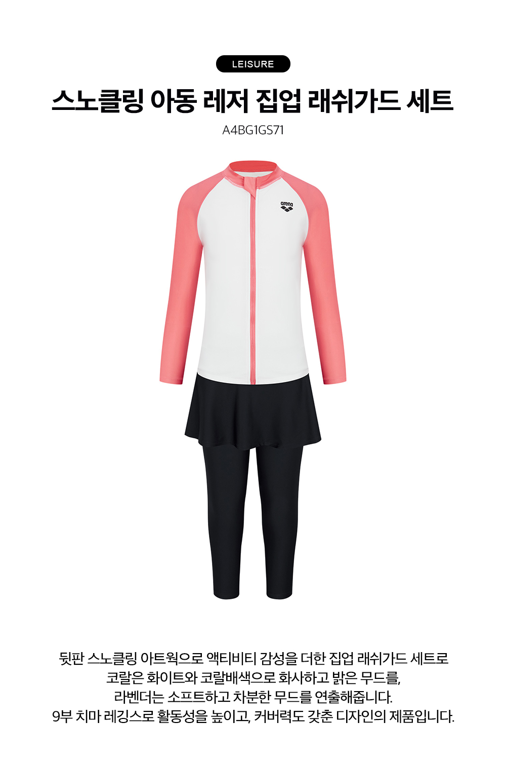(현대Hmall)아레나공식 스노클링 여아동 레저 집업 래쉬가드 세트 A4BG1GS71COR
