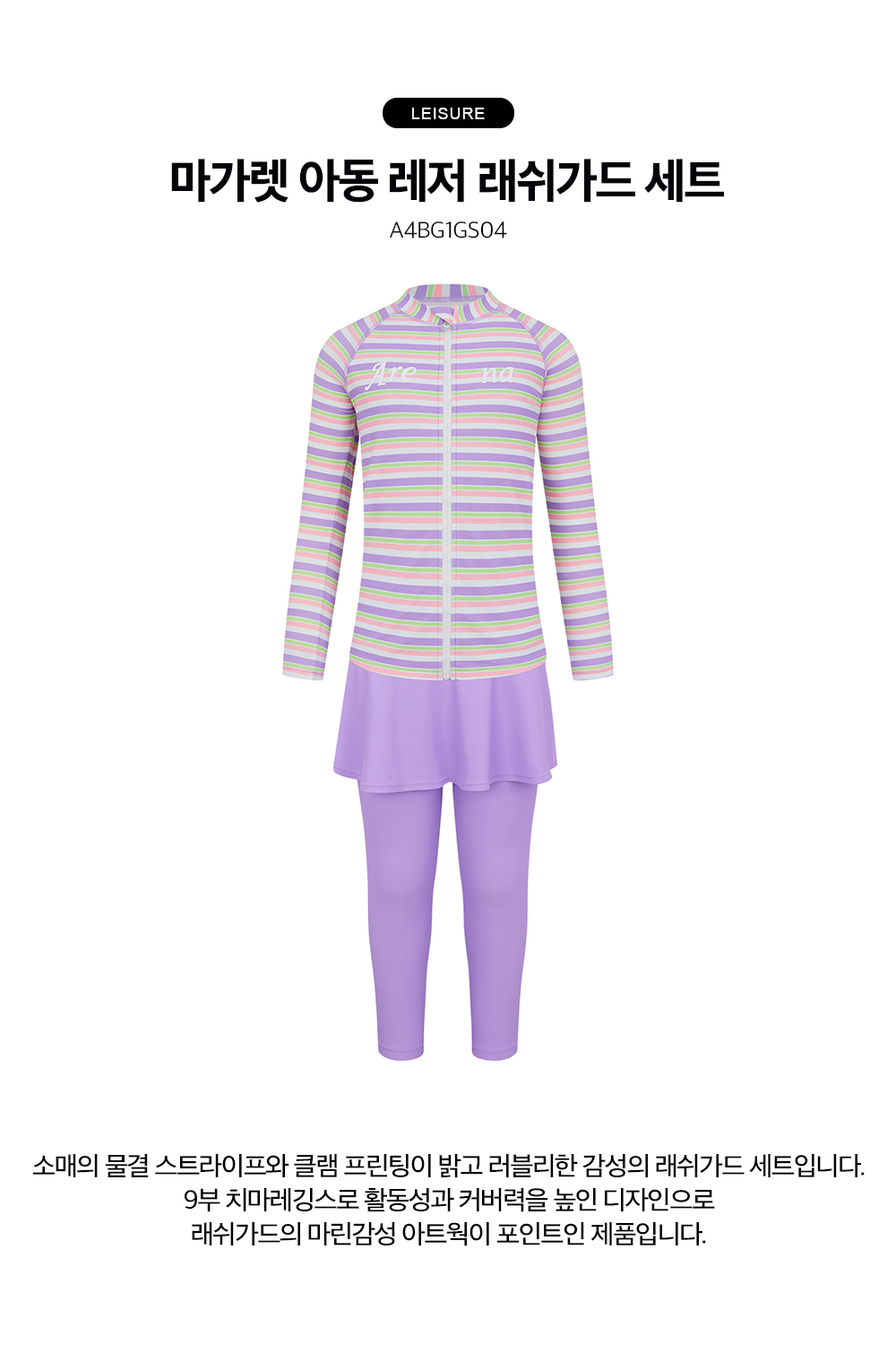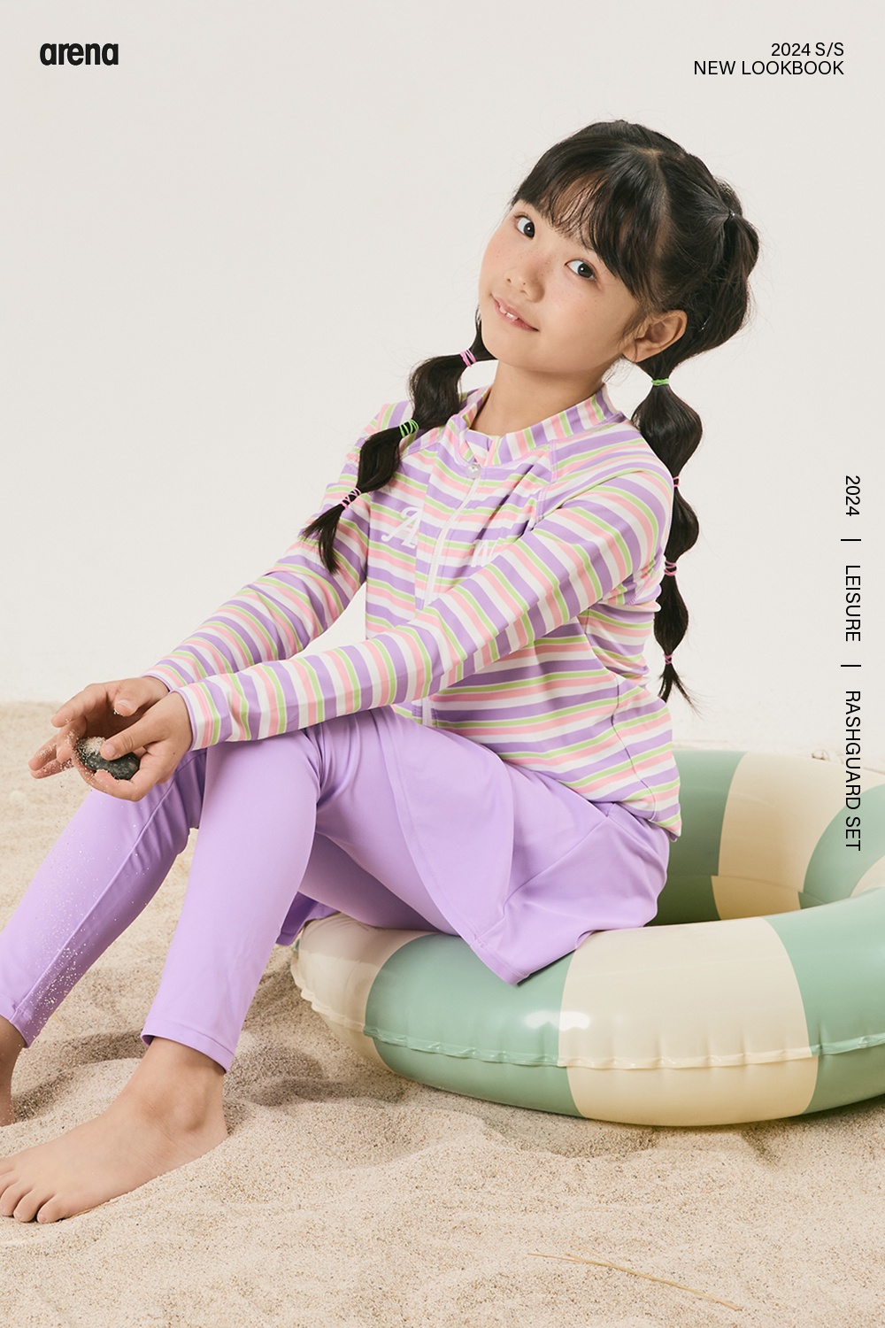 (현대Hmall)아레나공식 마가렛 아동 레저 래쉬가드 세트 A4BG1GS04PPL