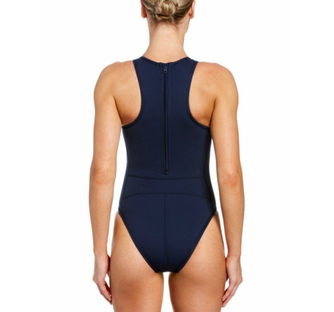 여성 워터 폴로 솔리드 백집업 원피스
