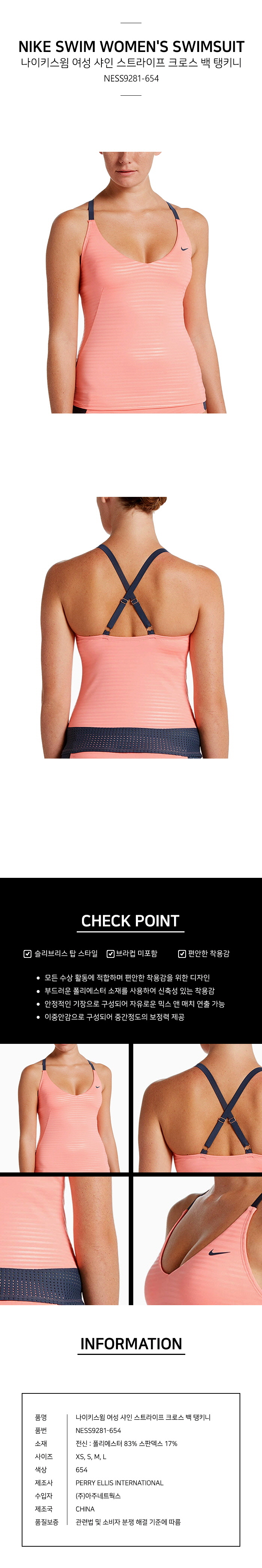 (롯데백화점)여자래쉬가드 6:1 샤인 스트라이프 크로스백 탱키니 NESS9281-654